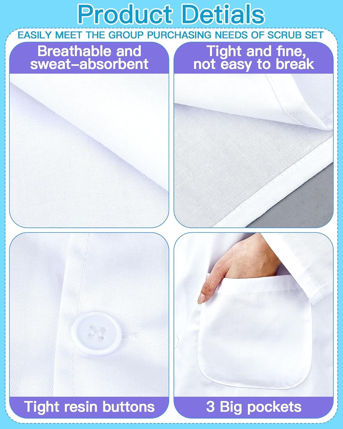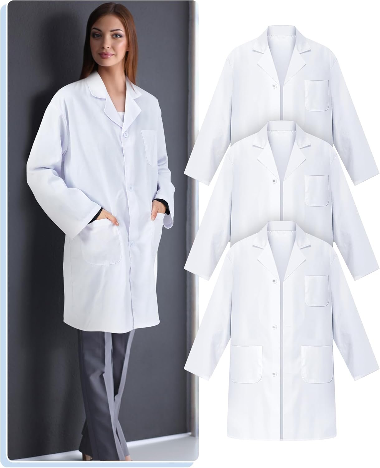 White Unisex Professional Lab Coat for Women Men Adults Long Medical Coat Lab Jacket for Grad Doctor Nurse (10)